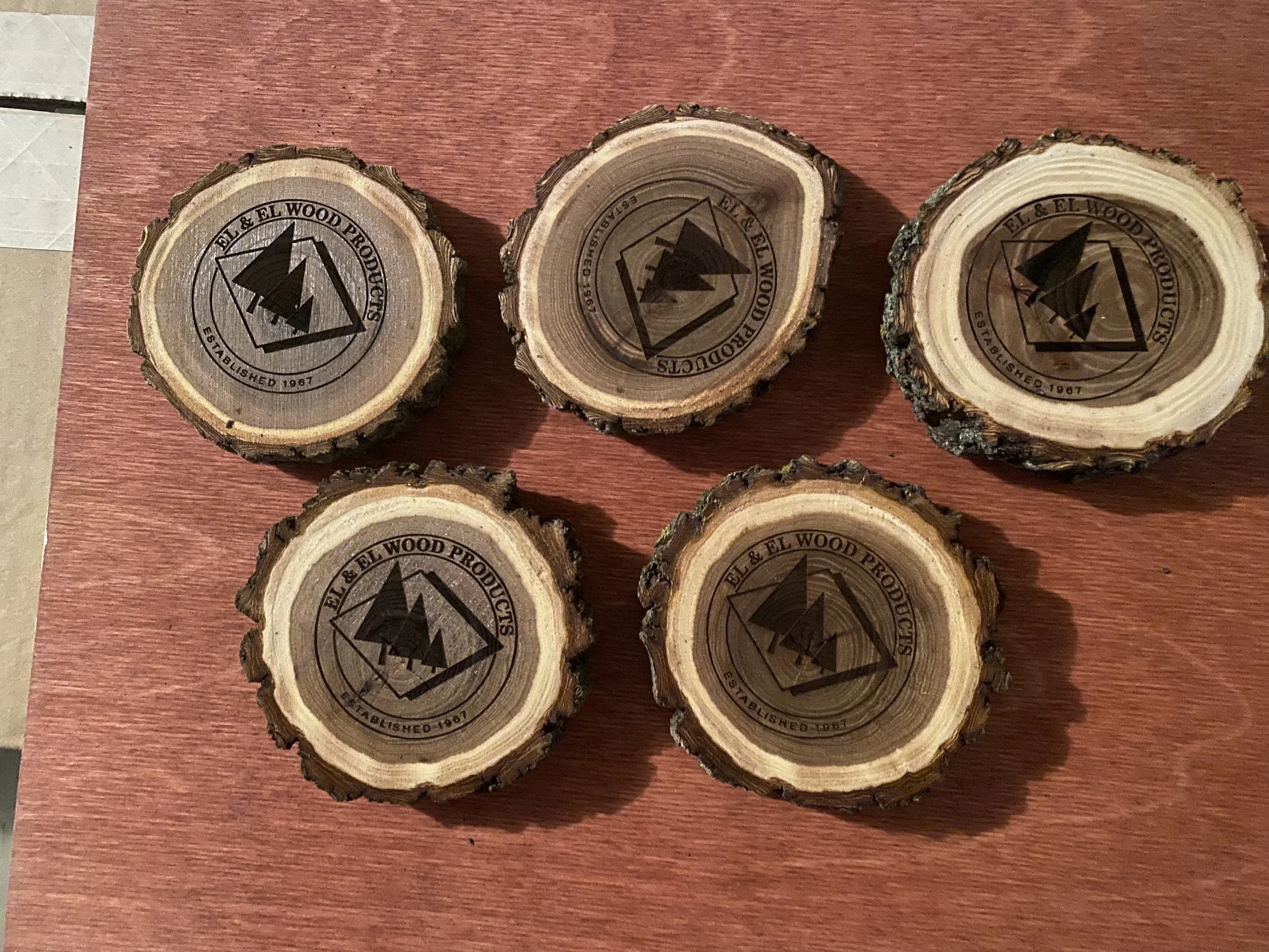 Log slice coasters pricing: We order our log slice coasters from an outside supplier and pass along that cost with no markup. There is also a charge for engraving.