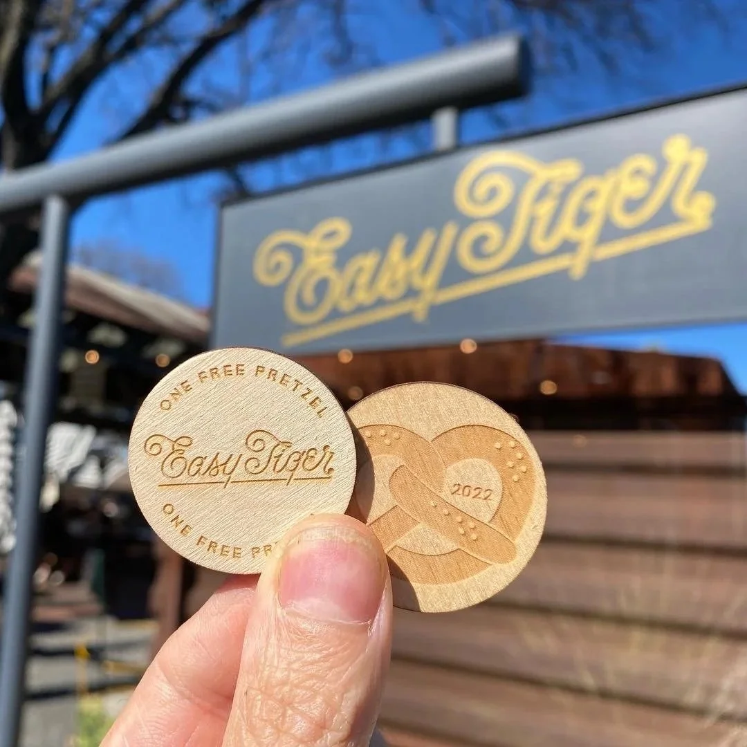 Attract new and repeat customers with “get one free” promotional tokens. Our customers also use laser engraved wooden nickels as fancy drink tickets at private events and as business cards.